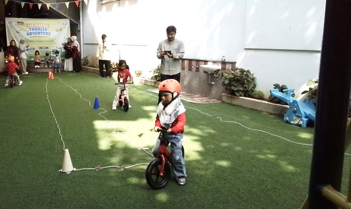 Balap sepeda berlangsung di lapangan bermain. Orang tua sibuk menyemangati anaknya berlomba. Art and craft dilaksanakan di dua ruang belajar, sedangkan story telling di perpustakaan.